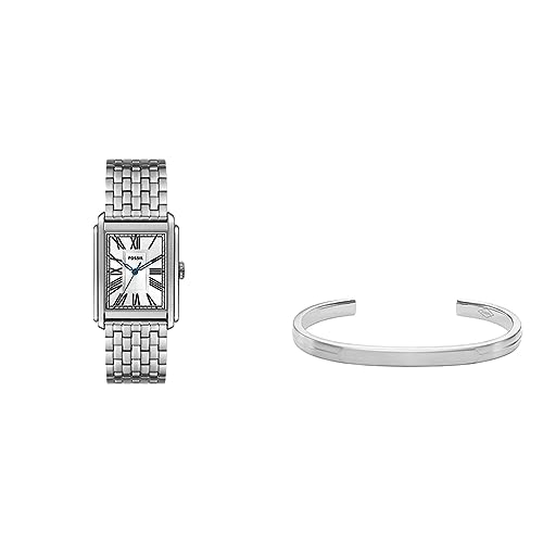 FOSSIL Men's Watch Carraway and Harlow Cuff Bracelet - Three-Hand Movement, Stainless Steel Watch and Linear Texture Stainless Steel Bracelet