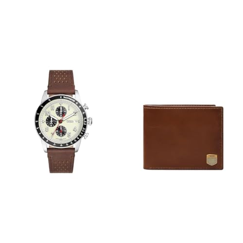 FOSSIL Men's Watch Sport Tourer and Wallet Hayes, Brown Leather, Set