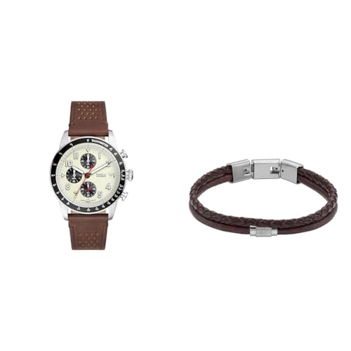 FOSSIL Men's Watch Sport Tourer and Bracelet Jewelry, Brown Leather, Set