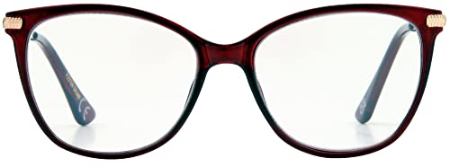 Foster Grant Elm Reading Glasses for Women +1.50 – Cat Eye Frame in Burgundy with Spring Hinges, Scratch-Resistant Coating & Protective Case