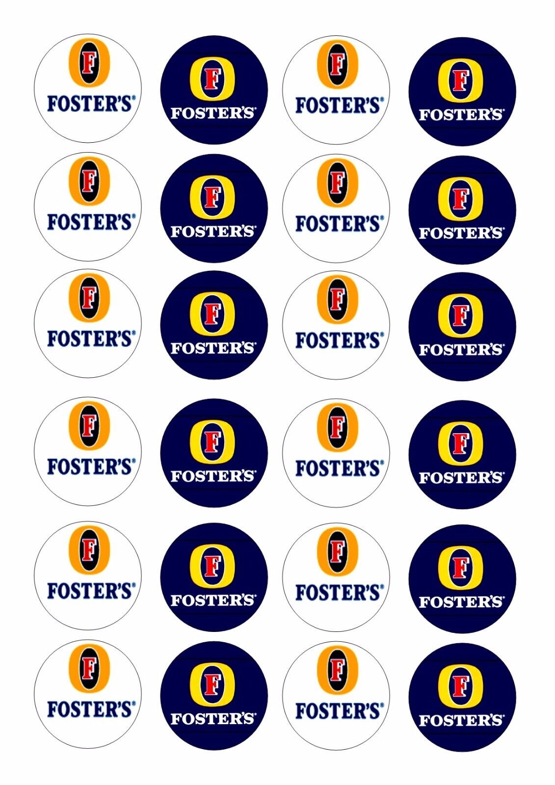 24 BEER LABEL FOSTERS ICE/ICING EDIBLE FAIRY/CUP CAKE/BUNS TOPPERS