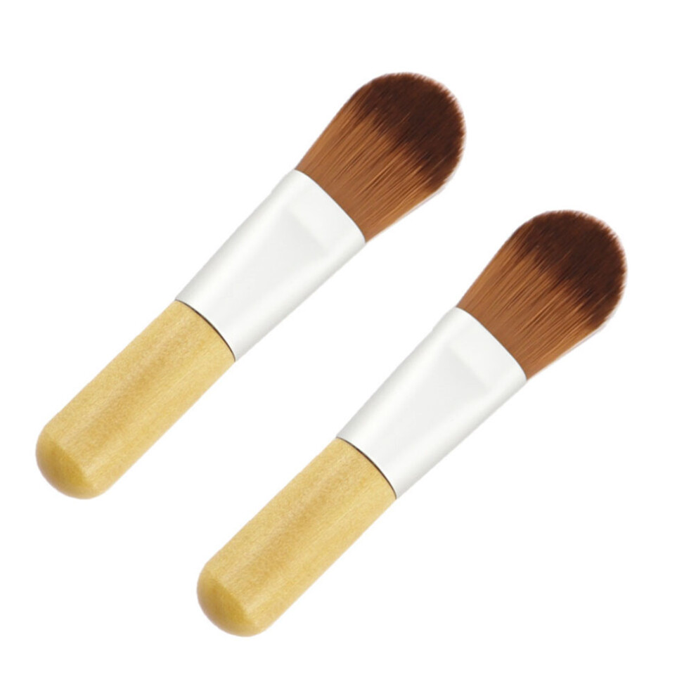 2pcs Mini Foundation Brush with Wooden Handle for Flawless Coverage and Travel Use