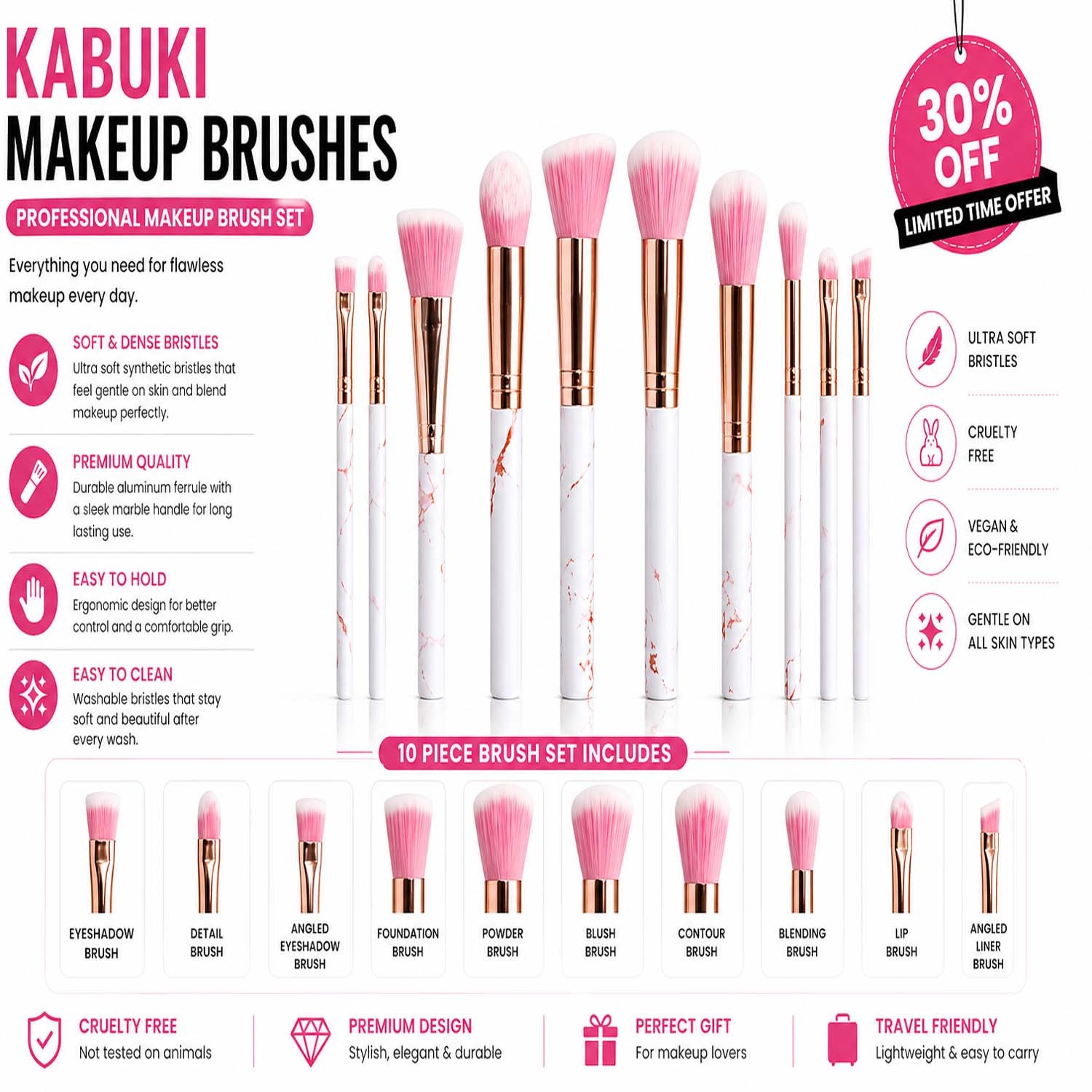 10 pcs Kabuki Make up Brushes Set Eye shadow Blusher Face Powder Foundation UK