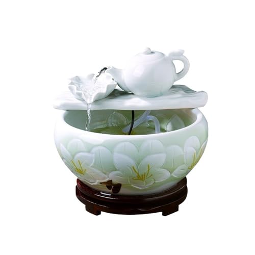 LXYST Fountains Ceramic Tabletop Artificial Bonsai Water Features Relaxation Waterfall Table Ornaments for Home Living Room Office Decoration Fountain decoration(Green)