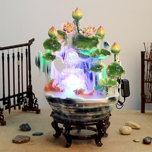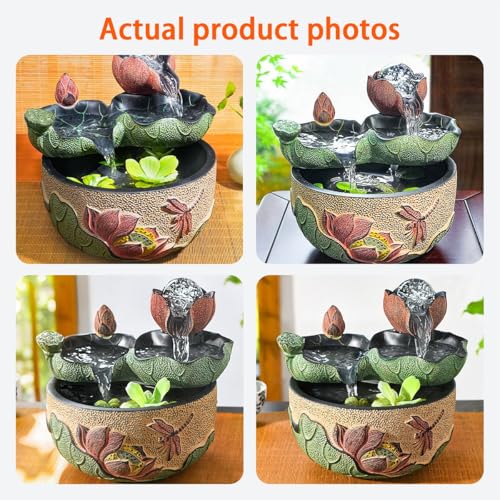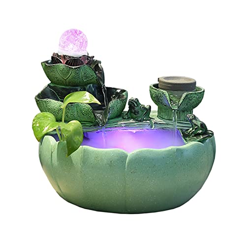 Desktop Fountain Tabletop Water Fountain with Rotating Ball and Pump Lotus Flower Lotus Leaf Cascading Waterfall Design Indoor Fountain for Office Home Decor, Green Table Fountain(Small)