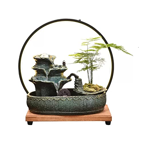 Table Fountain Table Fountain for Indoor Relaxation Fountain Running Water Desktop Feng Shui Wheel Circulation Water Bonsai Decorative Ornaments for Office Living Room TV Cabinet Fountain