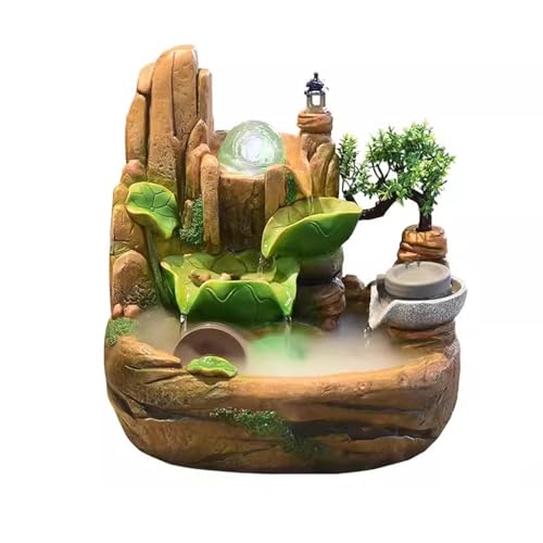 desktop fountain Tabletop Water Fountain Indoor Waterfalls Fountains Decorative Table Fountain with LED light Artificial Bonsai Tree Design Best home gifts for parents or friends table fountain(Small)