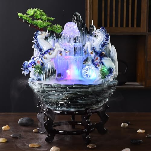 HLDJYLZS Tabletop Water Fountain, Feng Shui Money Flow, Ceramic Indoor Humidifier, Zen Relaxing Table Decor for Home Office Living Room(E)