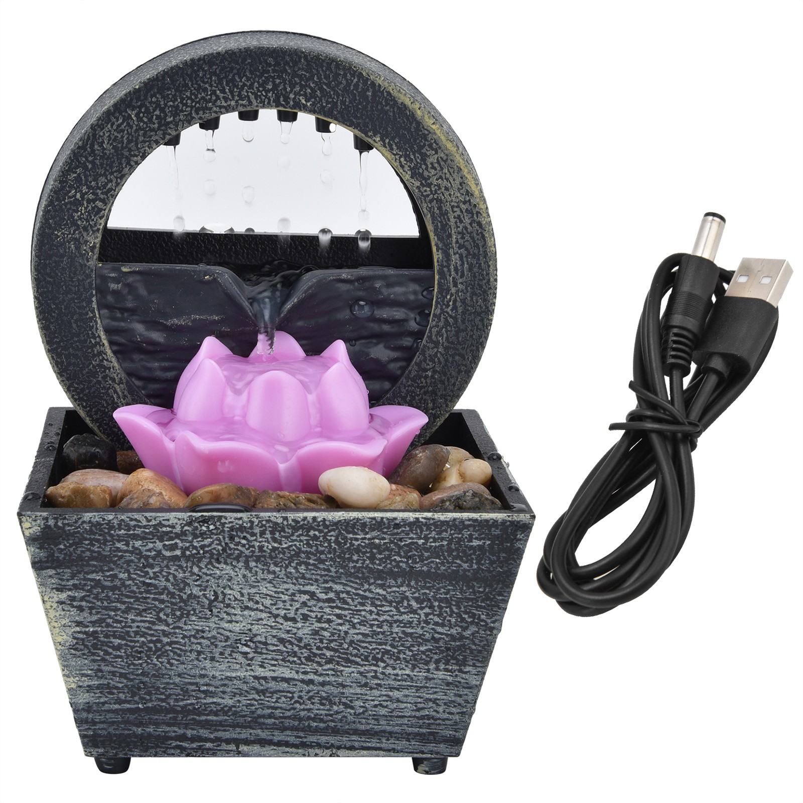 VIFERR Tabletop Water Fountain Interior Table Water Supplies Quiet Desktop Waterfall Zen Relaxation Home for Office Decoration 5V