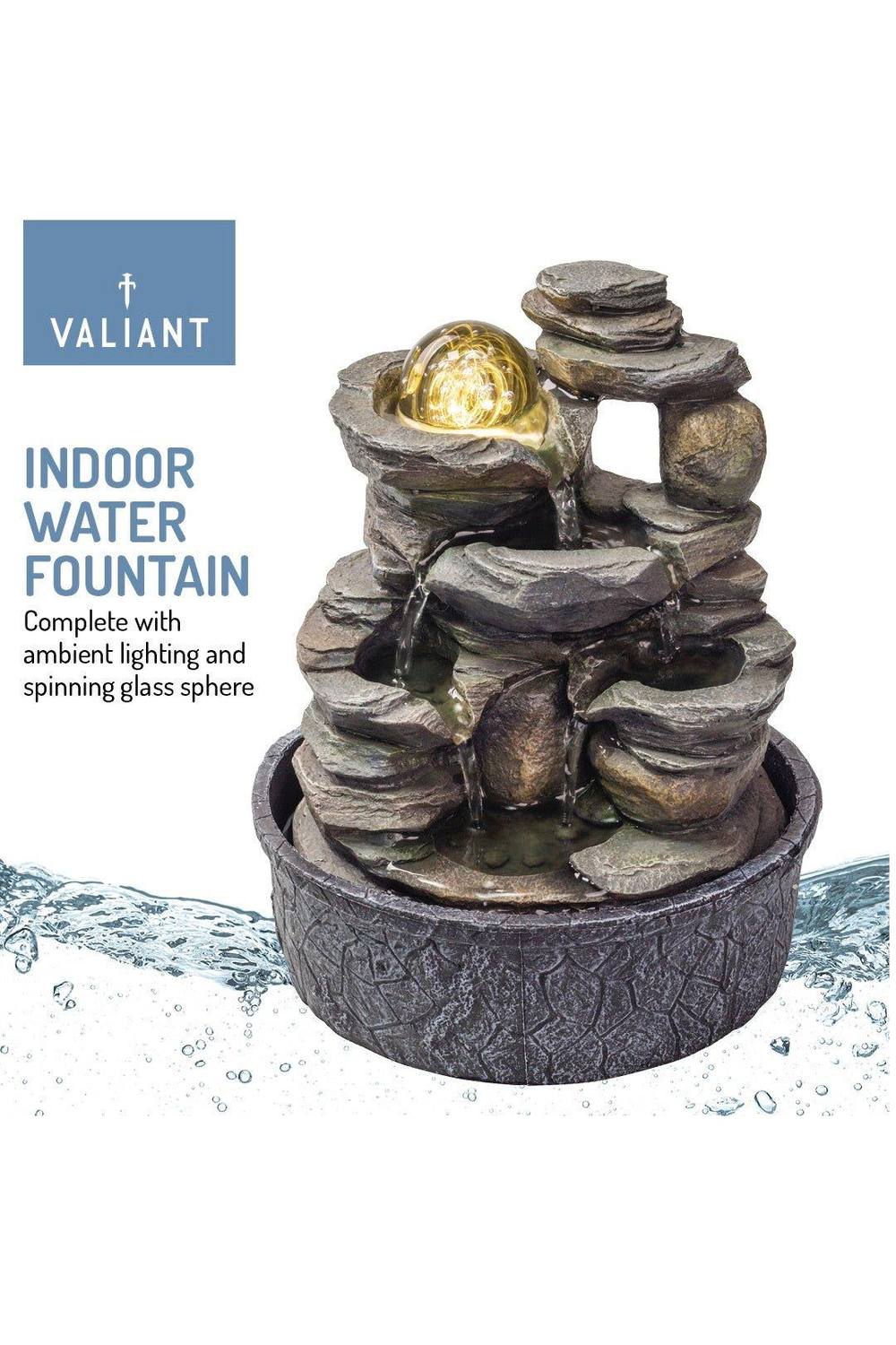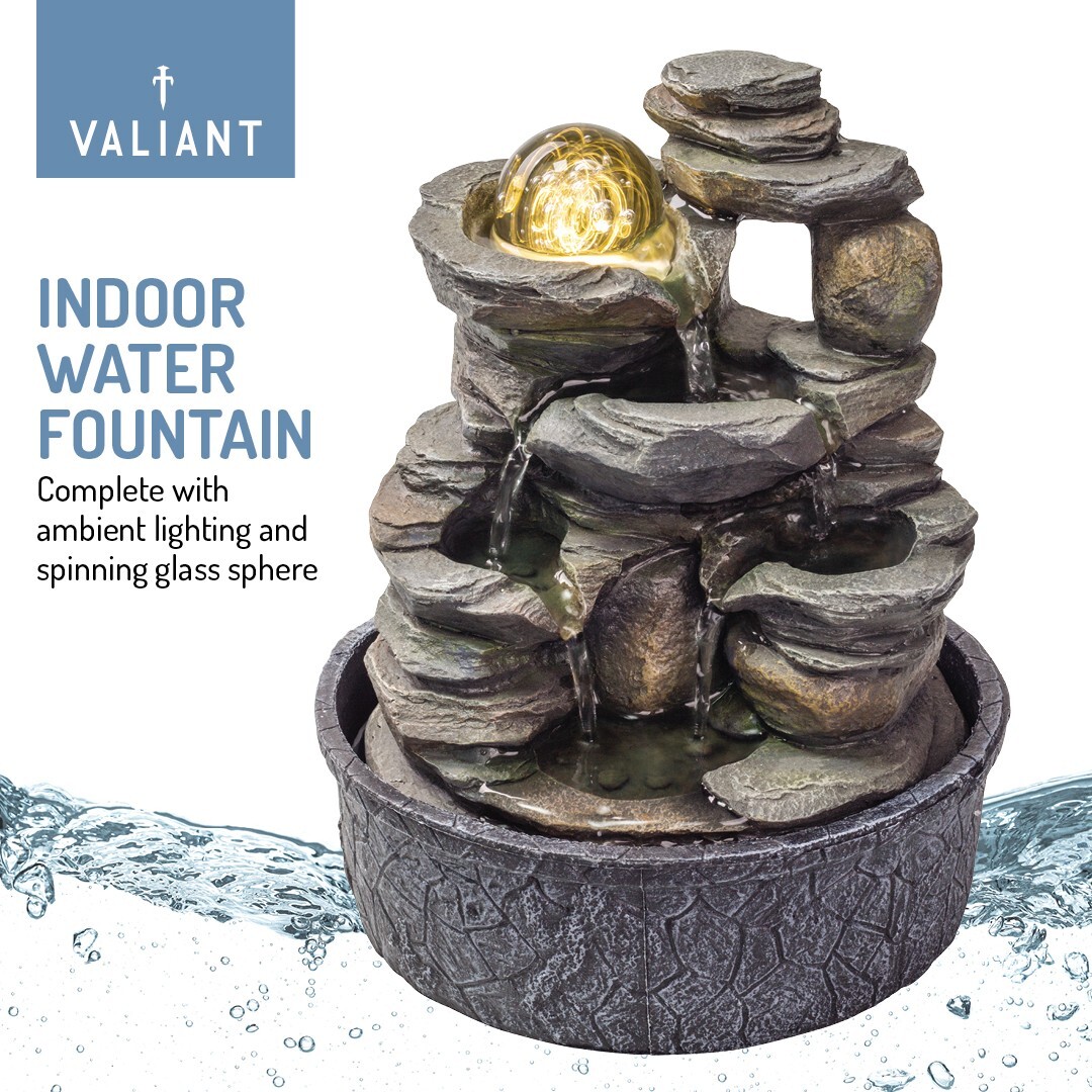 Valiant Table Top Calming Indoor Water Fountain with Spinning Glass Sphere