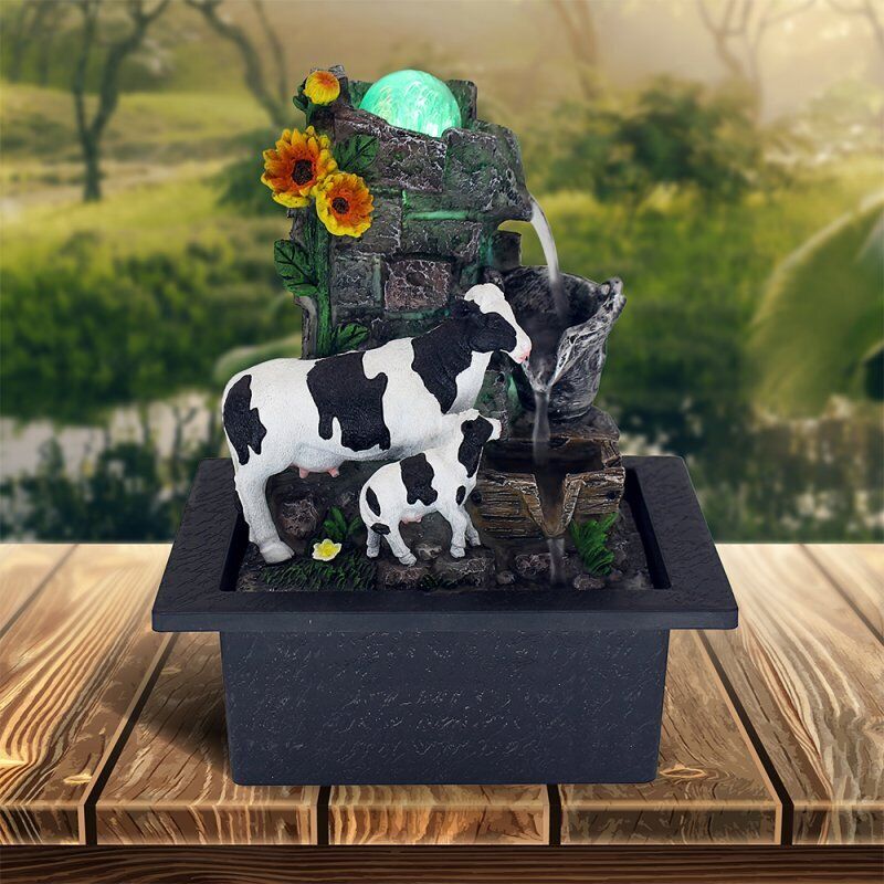 Cow Water Feature Fountain Tranquil LED Mini Indoor Zen Planter Table Decor