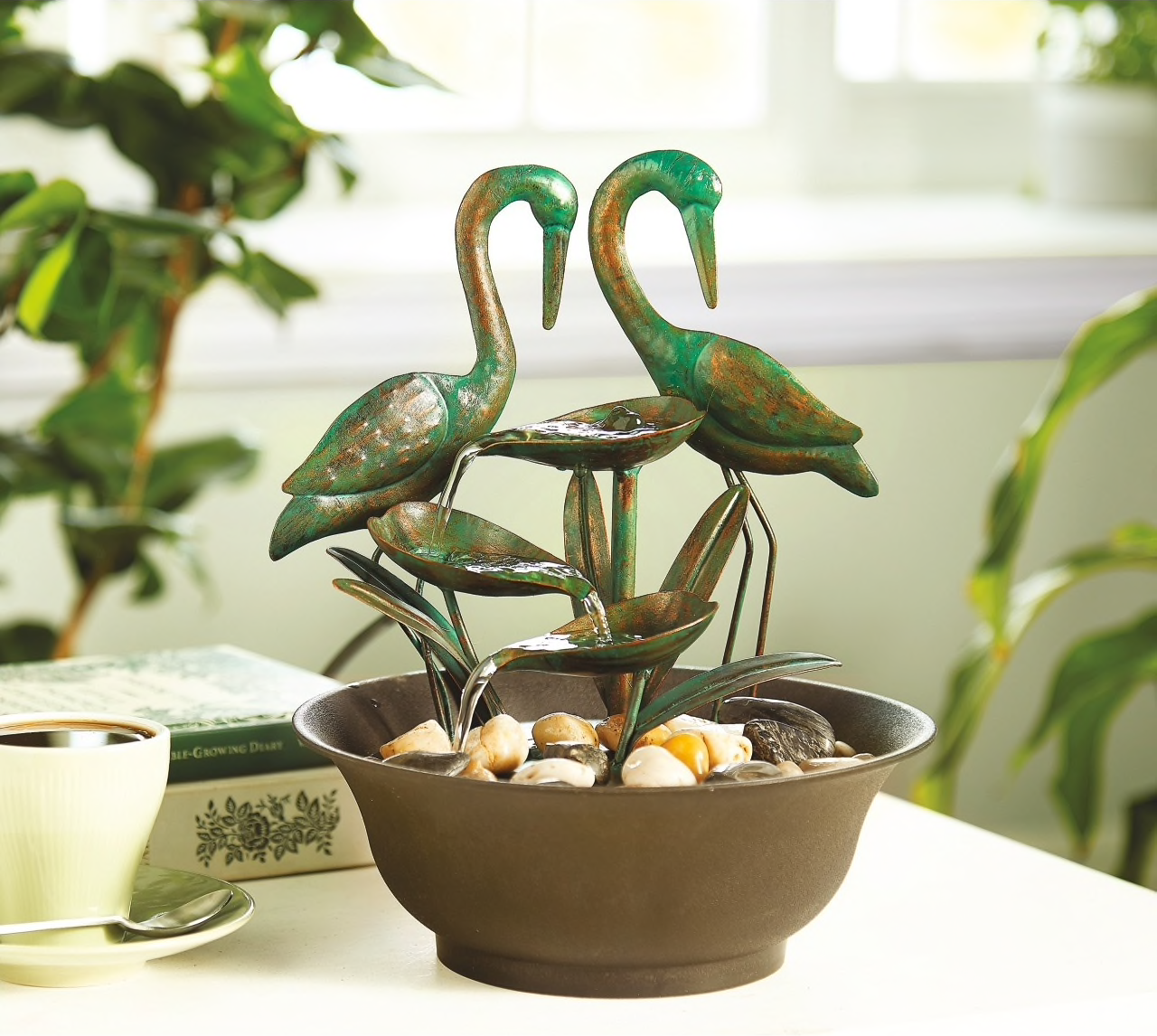 Indoor Crane Waterfall Sculpture Table Top Water Fountain Ornament