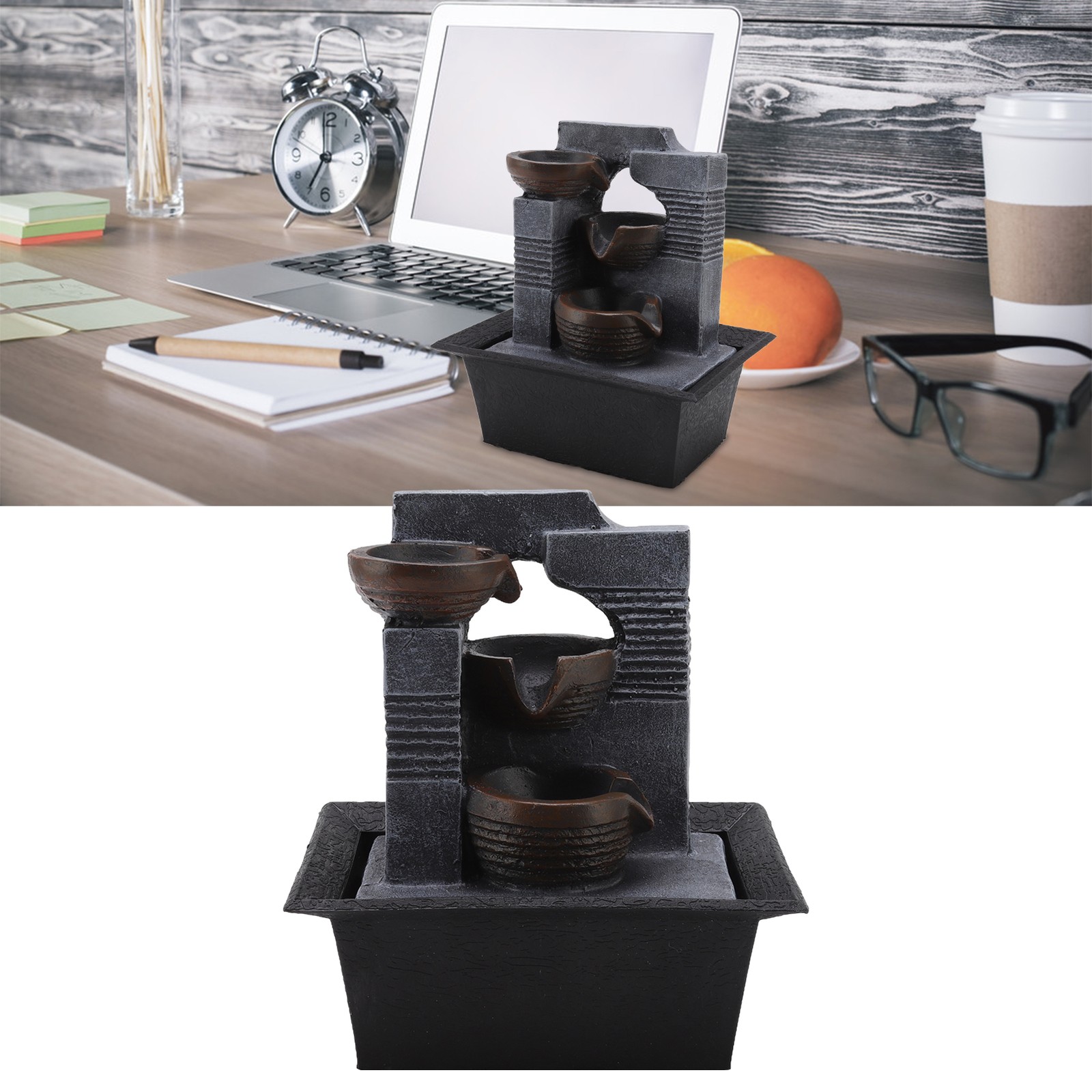 4 Tier Table Top Water Fountain Resin Crafts Desk Fountain Water Ornament With
