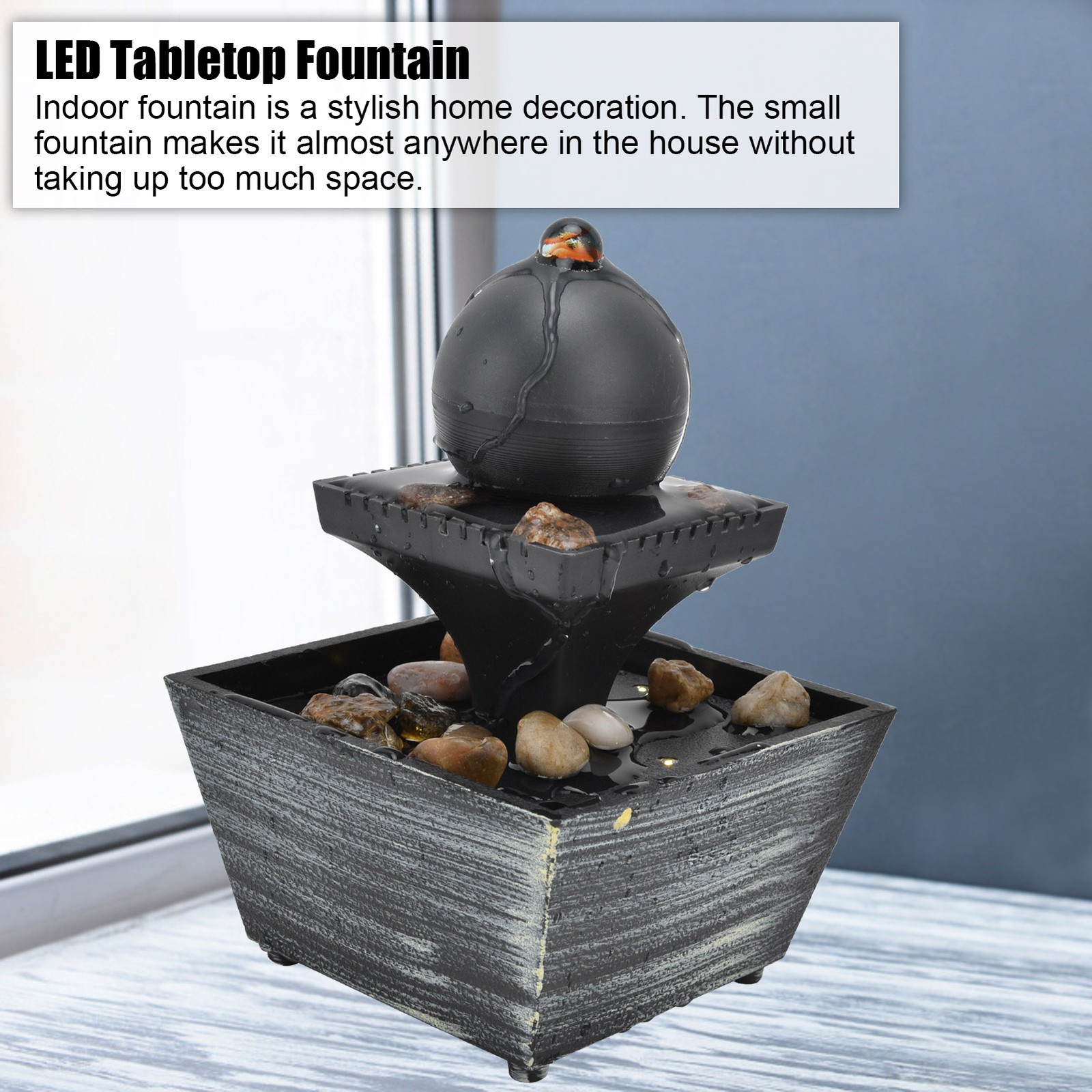 Desktop Water Feature Indoor Table Top Fountain LED Lights Round Ball Decoration