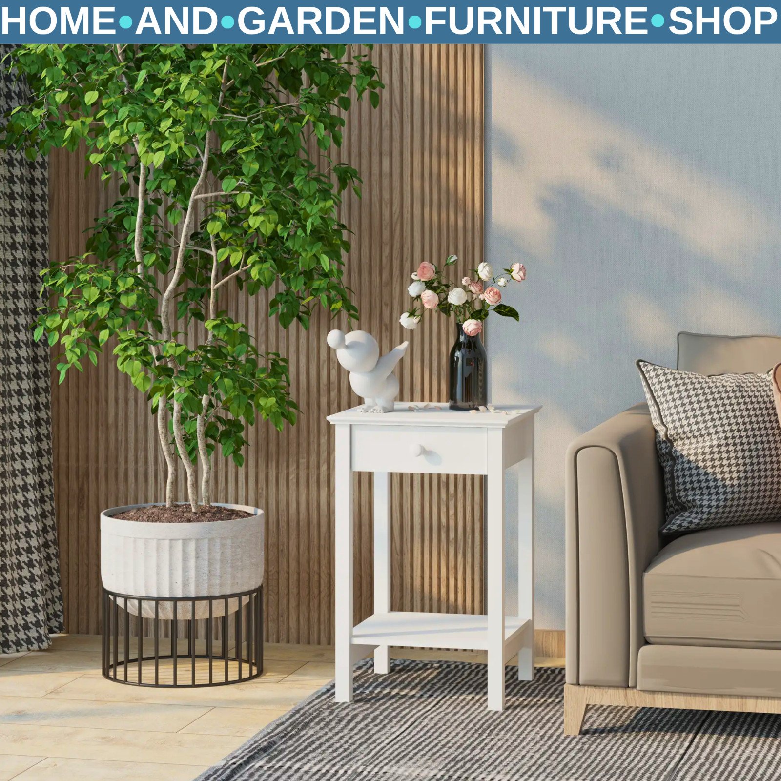 Drawer Bedroom Bedside Cabinet White Nightstand Side Table