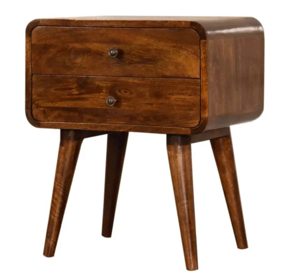Nordic Bedside Table Scandinavian Style 2 Drawer Solid Wood Vintage Cabinet Unit