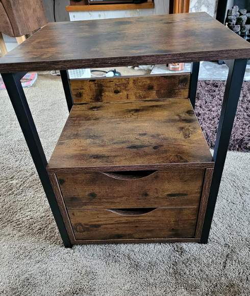 Industrial Style Side Table 2 Drawer Bedside Cabinet Nightstand Phone Lamp Stand