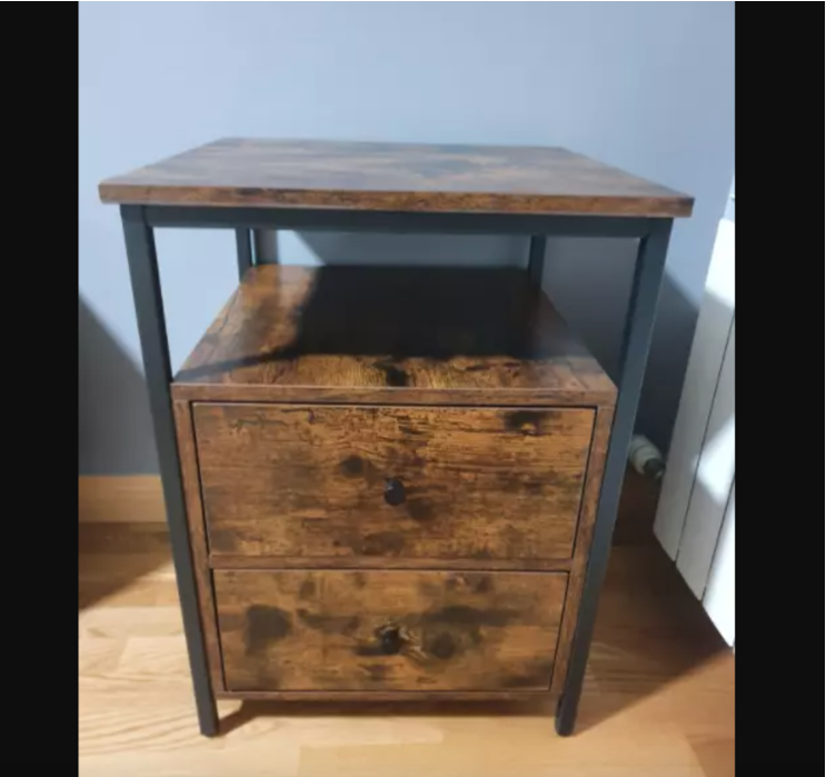 Rustic Bedside Table Vintage Industrial Side Cabinet 2 Drawer Metal Storage Unit