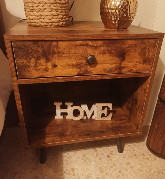 Bedside Table Nightstand 1 Drawer Cabinet Shelf Storage Bedroom Rustic Furniture