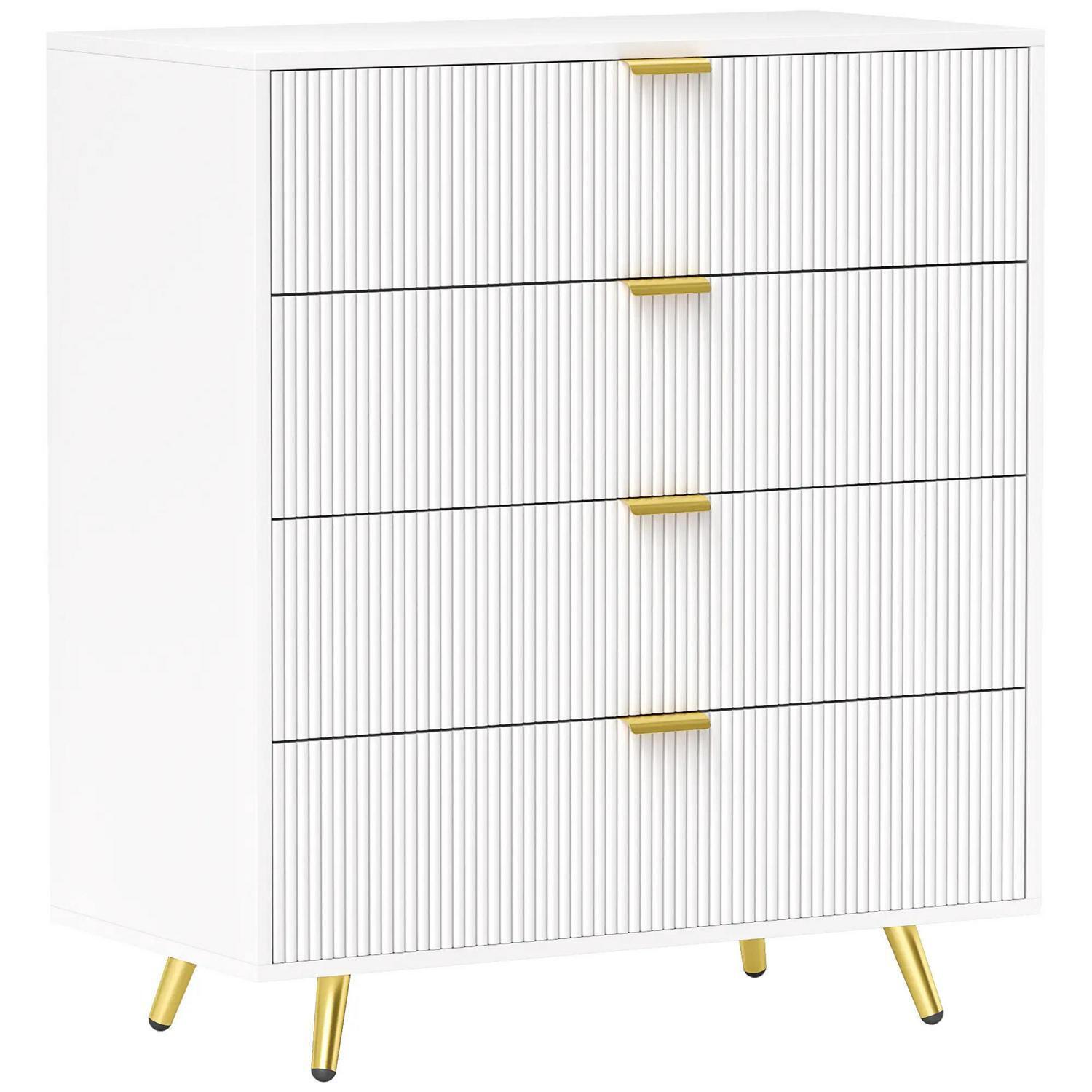 Elegant Four Drawer Bedside Table White Modern Chest Storage Solid Floor Mount