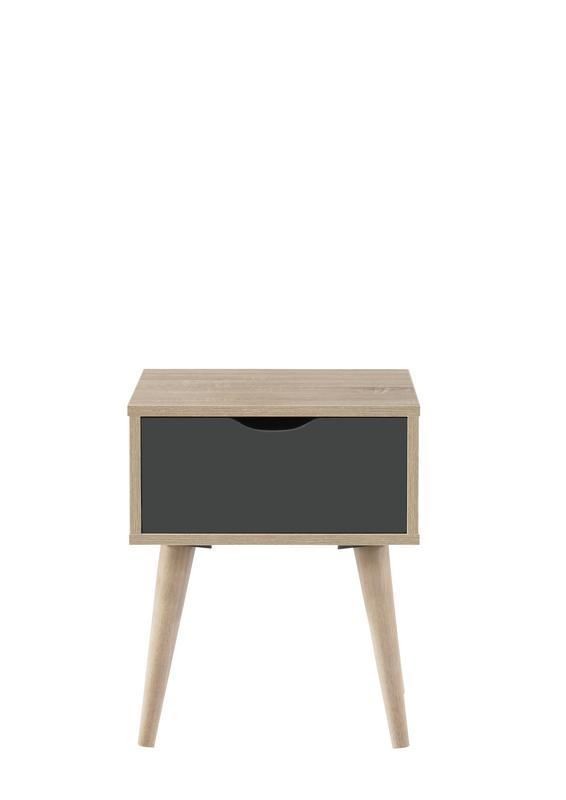 Scandi Style Oak Bedside Cabinet 1 Drawer Grey Lamp Table