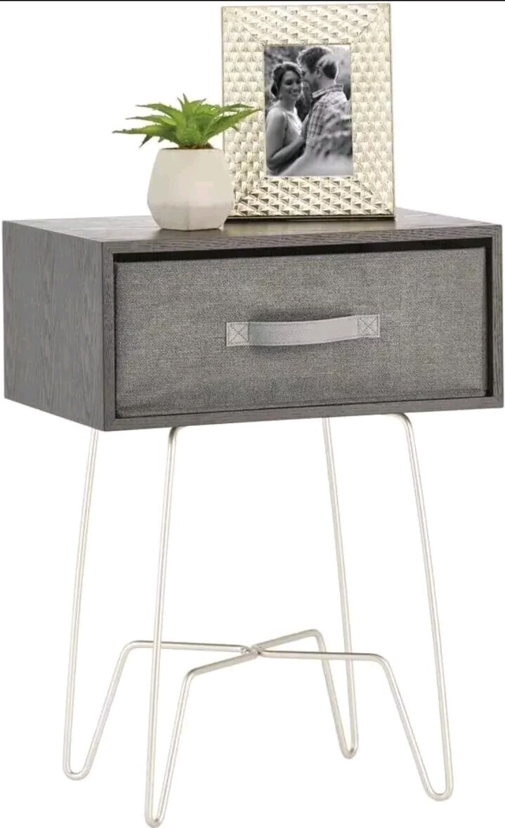 Modern Side Table With Drawer Grey And Metal Legs MDESIGN bedside Table