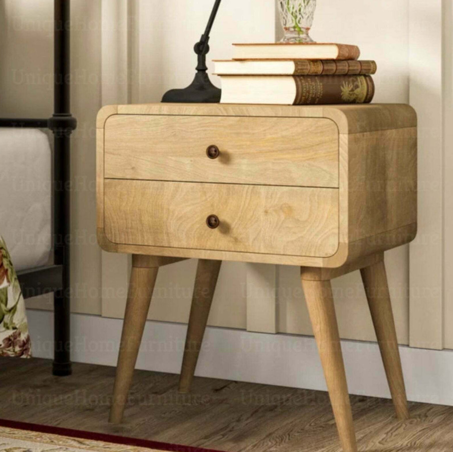 Mid Century Bedside Table Scandinavian 2 Drawer Unit Solid Wood Vintage Cabinet