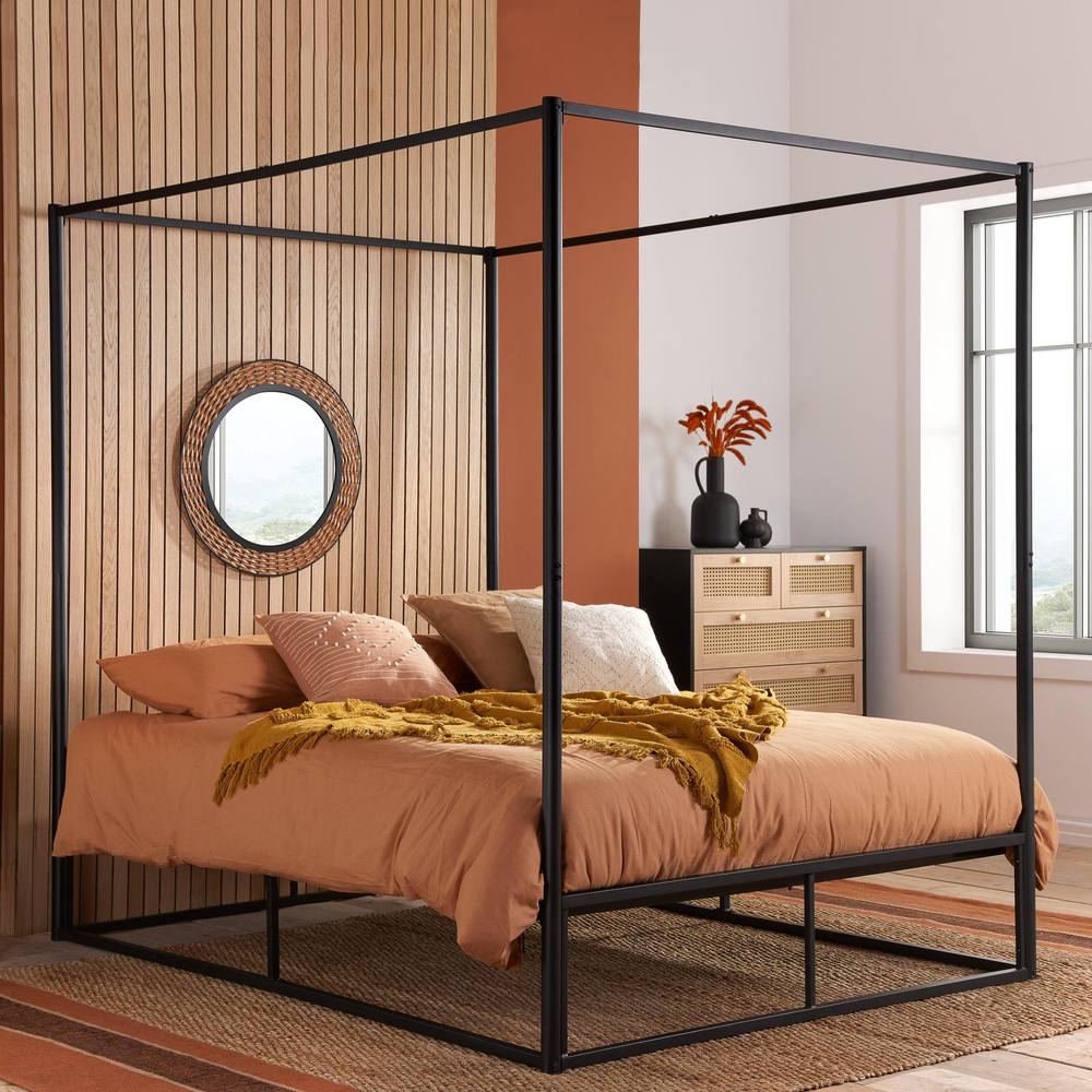 Birlea Four Poster Bed Frame Black Metal 4 Poster Canopy Farringdon | Size: Double
