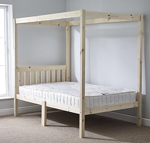 STRICTLY BEDS&BUNKS Quattro Four Poster Bed Frame including Sprung Mattress (20cm), 5ft Kingsize