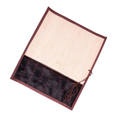 HOMSFOU Bamboo Brush Pen Roll up Case Medium Size, Protective Pencil Wrap Pouch for Artists and Students, Four-Sided Edge Binding Storage for Art Supplies and Stationery Transport
