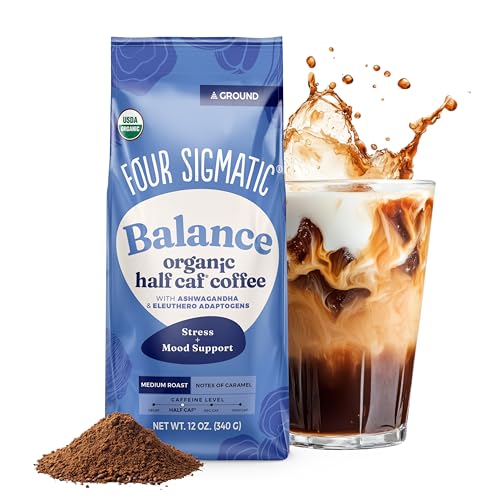 Four Sigmatic Organic Balance Adaptogen Ground Coffee | Medium Roast USDA Organic, Fair Trade Coffee with Ashwagandha, Chaga Mushroom, Eleuthero and Tulsi | Focus and Energy Boosting Coffee | 12oz Bag