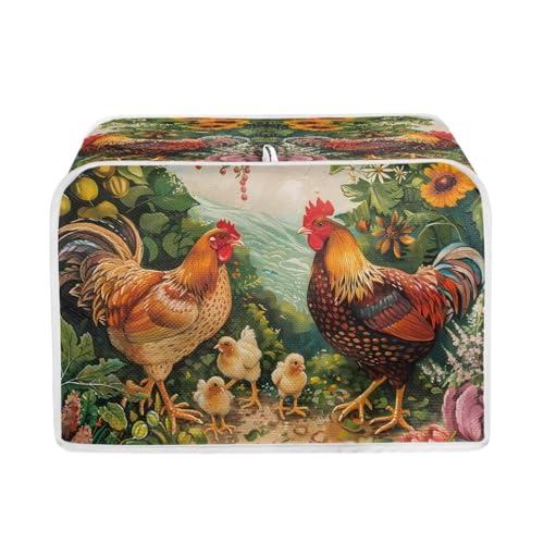 Kuiaobaty Chickens Floral Print Cover for Toaster 2 Slice, Small Washable Kitche