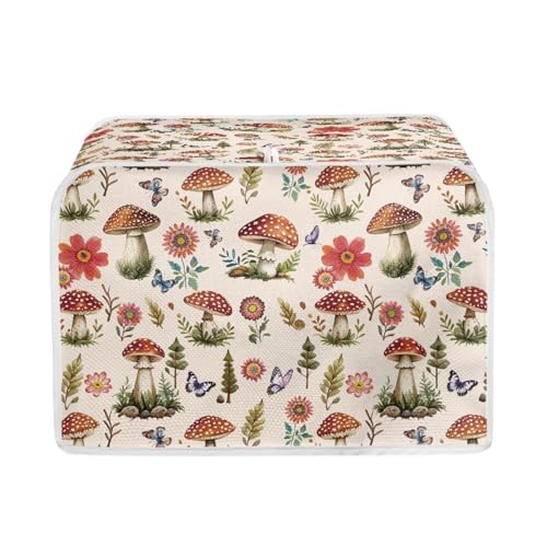 STUOARTE Mushroom Flower Printed 4 Slice Toaster Cover Washable Dustproof Bread Machine Cover Stain Resistant Kitchen Appliance Protection Dustproof Toaster Protection
