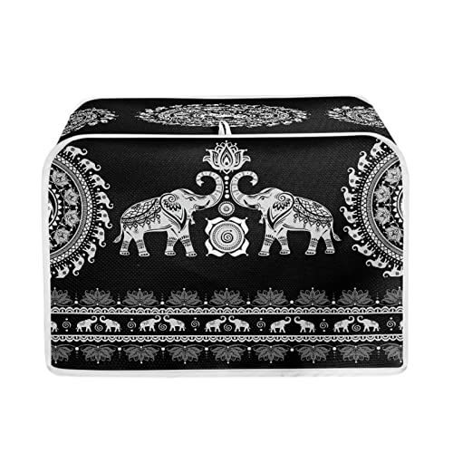 STUOARTE Mandala Elephant Toaster Cover,2 Slice Toaster Appliance Dust Cover,Boho Mandala Tribal Kitchen Small Appliance Covers for Most Standard Long Slot Toasters, Black