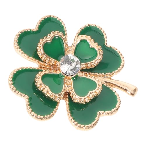 OUNONA Green Rhinestone Four-leaf Clover Brooch Pin for Women, Gold Tone Shamrock Alloy Charm Jewelry, Good Luck Accessory for St Patrick’s Day, Weddings, and Spring Parties