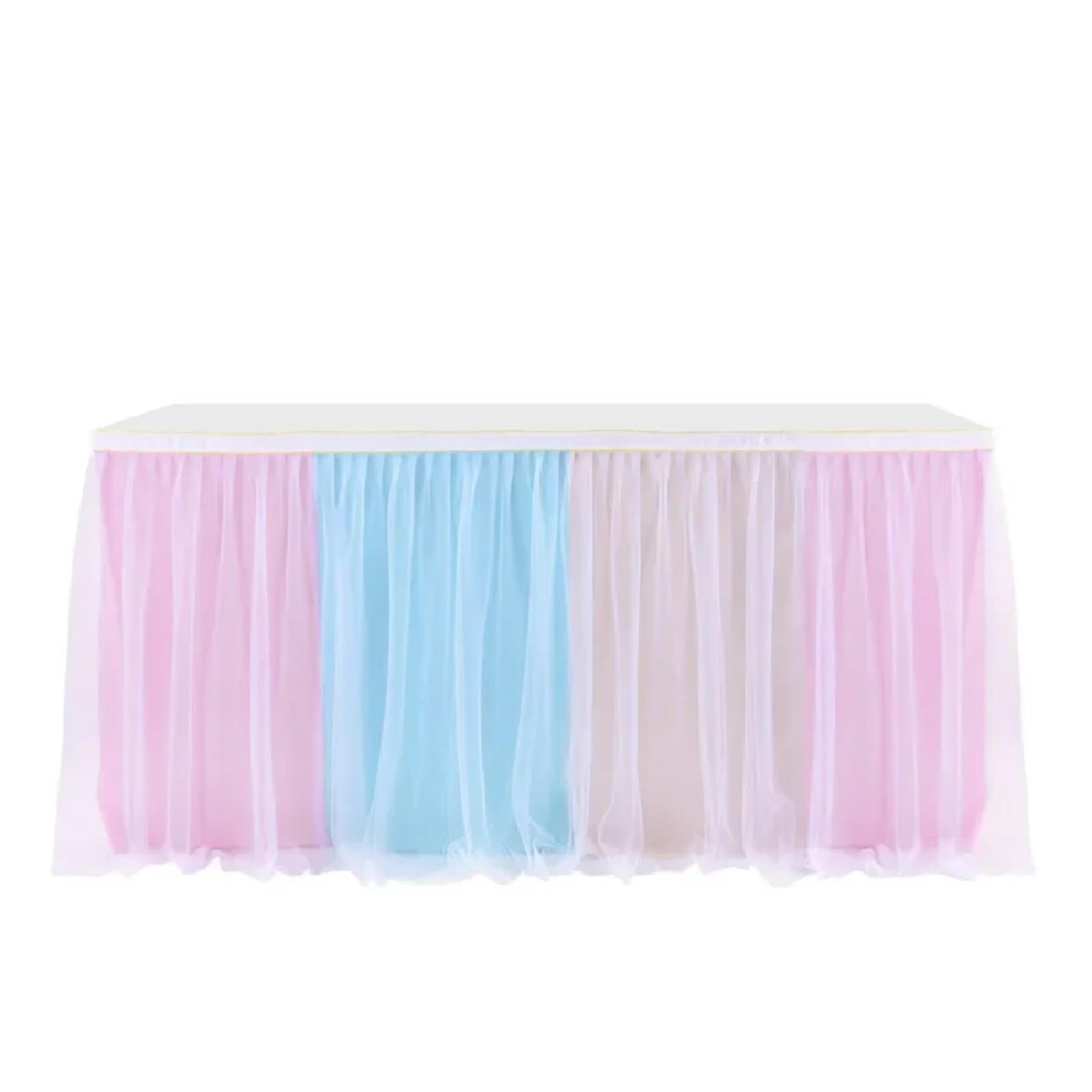 4FT/6FT/9FT Tulle Table Skirt for Weddings and Parties, Gender Reveal and Birthday Decoration, 77x275cm Available in Four Colors