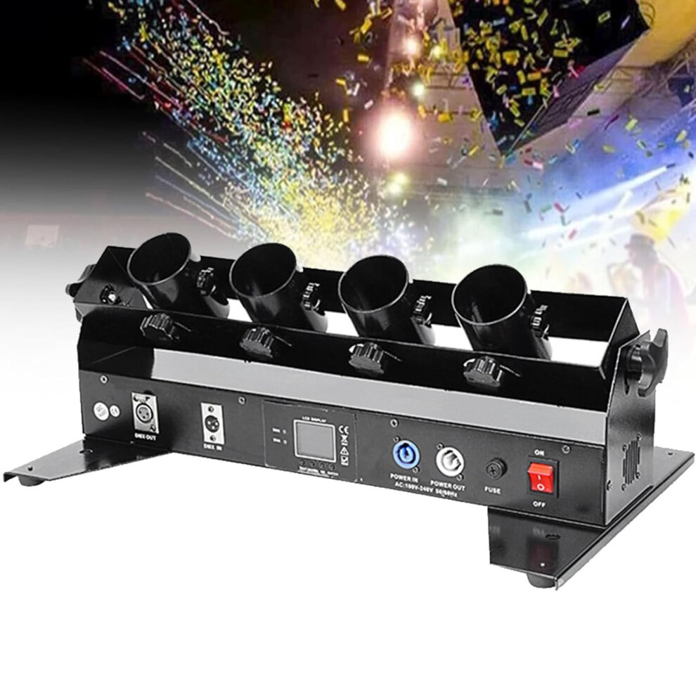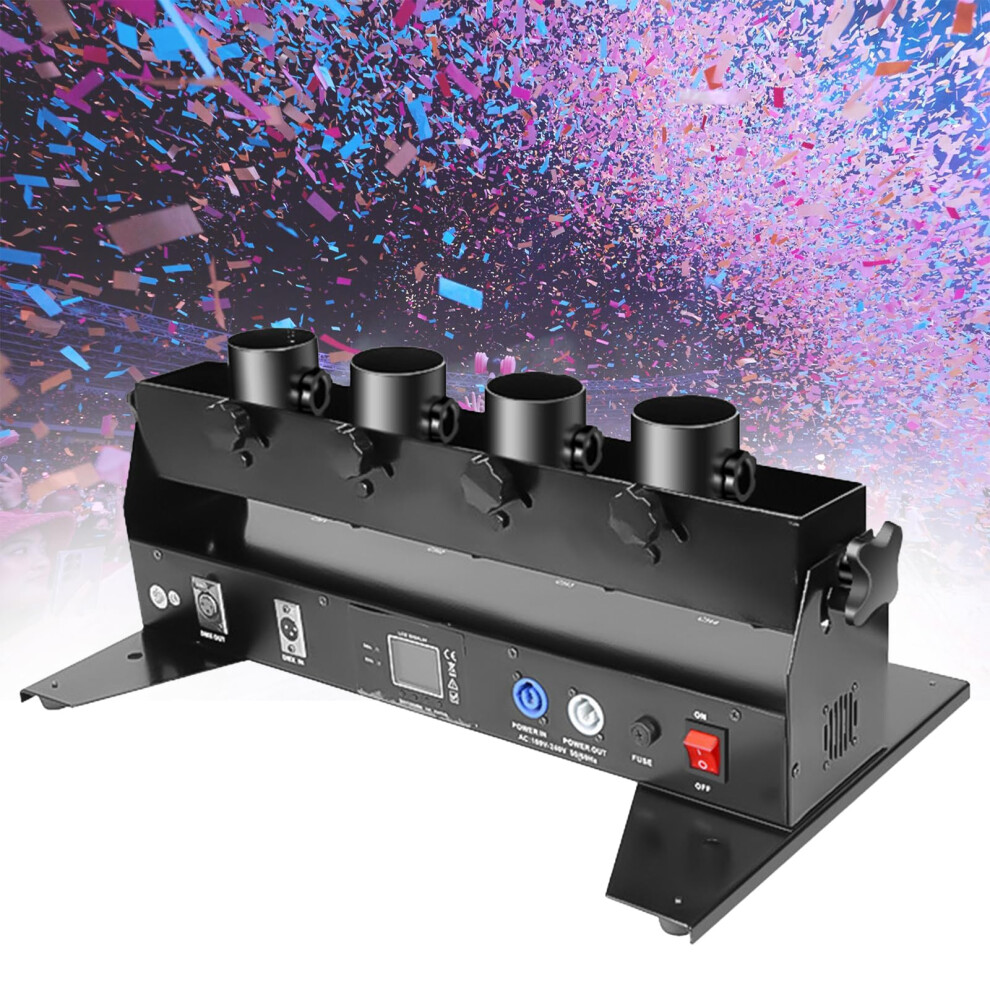 Four Heads Confetti Cannon Launcher 150W DMX512 Controller Wireless Remote Weddings Parties Clubs Concerts