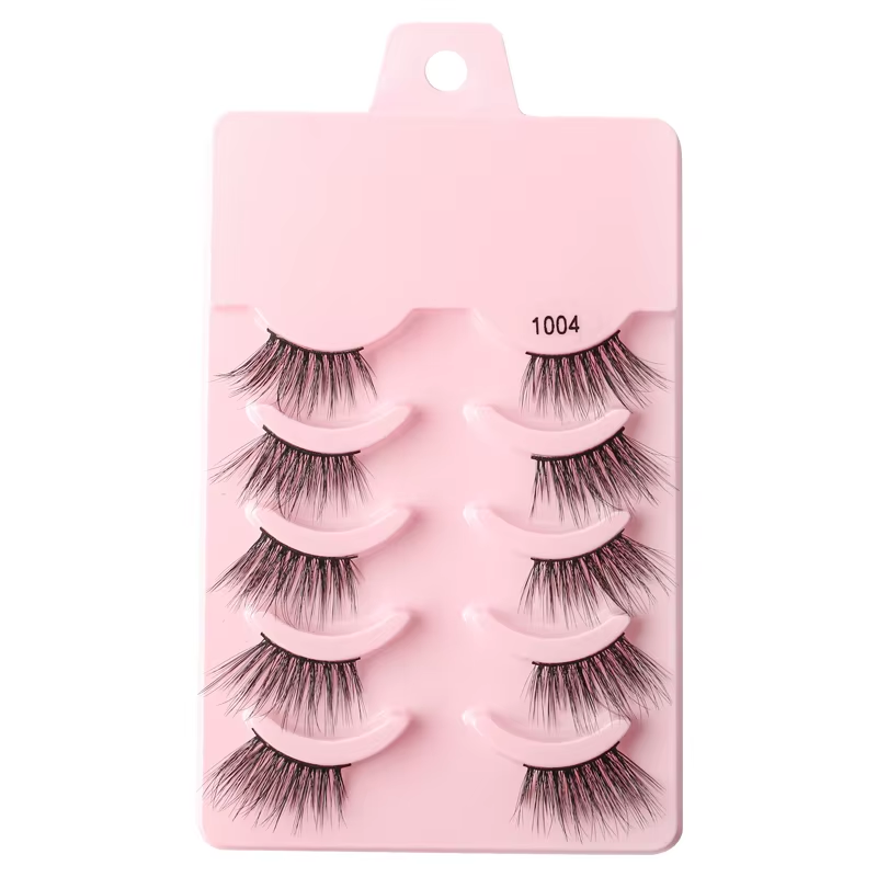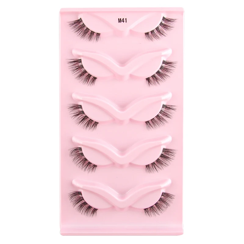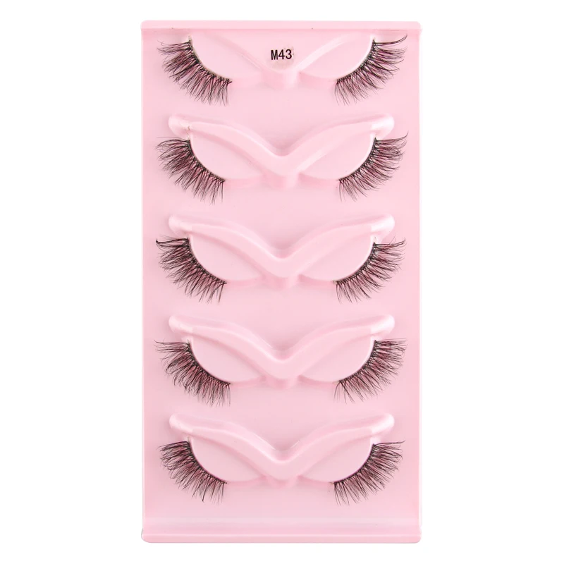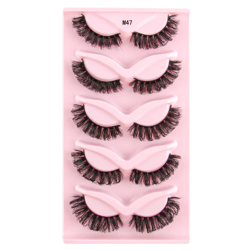 EMEDA Fox Eye Lashes 3D Wispy Lashes Natural Look 13mm L Curl Lash Extension Effect Thick Pink Synthetic Fibre False Eyelashes 5 Pairs