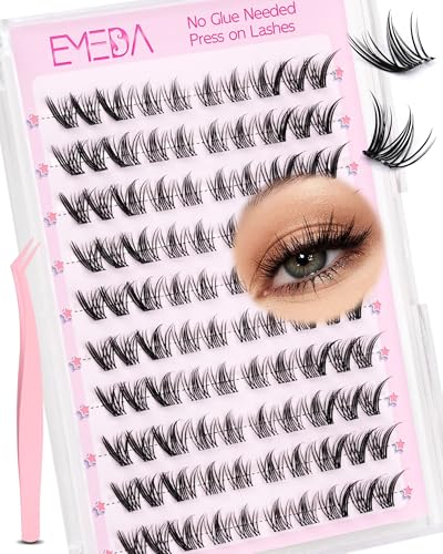 EMEDA Self Adhesive Eyelashes Natural Looking Self-Adhesive Lash Clusters Pre Glued Eyelashes Clusters Kit No Sticky Residue Glueless Cluster Lashes No Glue Needed fox eye (Black)