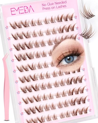 EMEDA Brown Self Adhesive Eyelashes Natural Looking Self-Adhesive Lash Clusters Pre Glued colored Eyelashes Clusters Kit No Sticky Residue Glueless Cluster Lashes No Glue Needed fox eye(Brown)