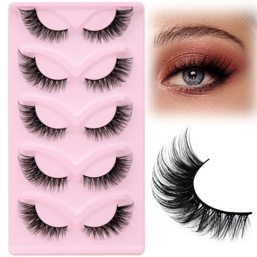 False Lashes Natural Short Eyelashes Cat Eye Wispy 3D Mink Full Fluffy Fox Eye