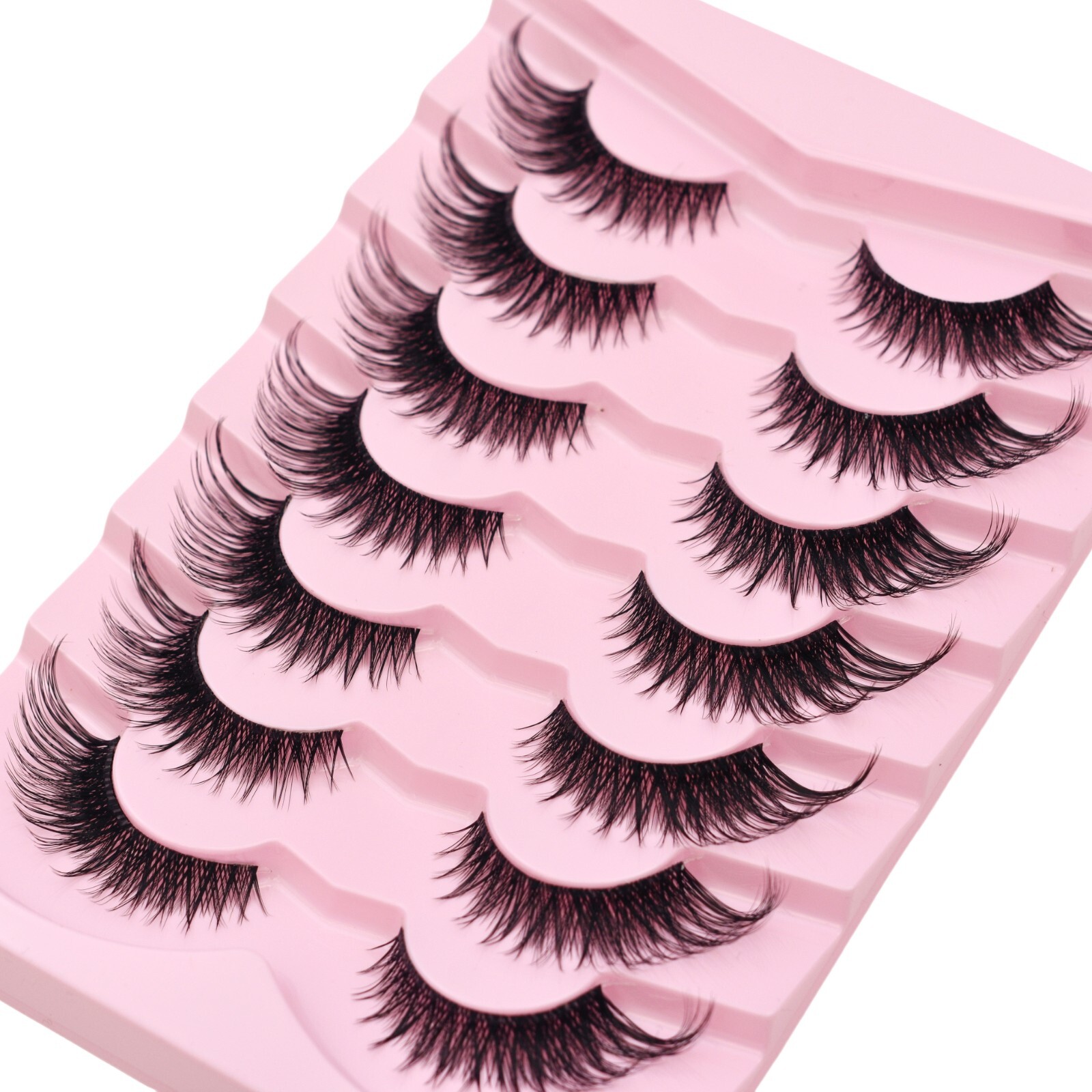 False Eyelashes Wispy Lashes Natural Look Fake Eyelashes Cat Eye Lashes Faux Mink Fluffy Strip False Lashes Fox Eye Lashes Pack 7 Pairs ALICROWN