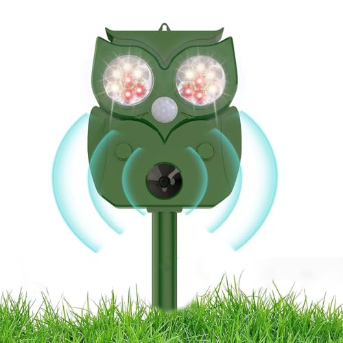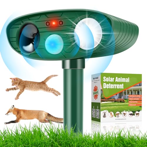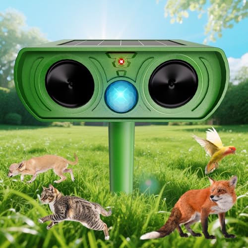 ASSCA Cat Repellent, Ultrasonic Fox Repellent, Solar Powered & Waterproof Animal Deterrent, Dog Birds Rat Scarer Repeller for Outdoor Gardens Yard Field Farm