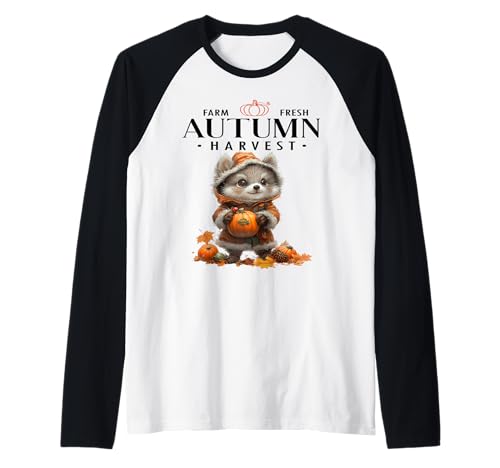 Farm Fresh Autumn Harvest Trendy Woodland Grey Fox Season Raglan Baseball Tee