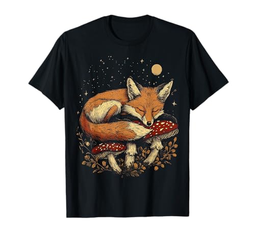 Cute Cottagecore Mushroom Orange Fox Animal T-Shirt