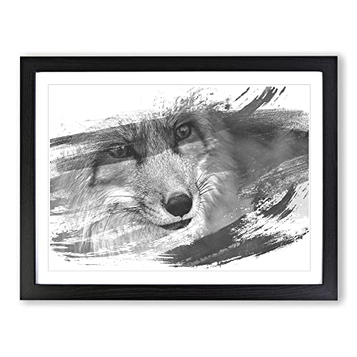 Red Fox Vol.5 V1 Modern Framed Wall Art Print, Ready to Hang Picture for Living Room Bedroom Home Office Décor, Black A4 (34 x 25 cm)