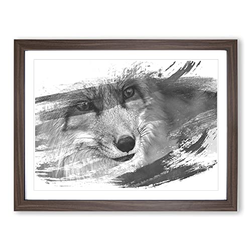 Red Fox Vol.5 V1 Modern Framed Wall Art Print, Ready to Hang Picture for Living Room Bedroom Home Office Décor, Walnut A3 (46 x 34 cm)