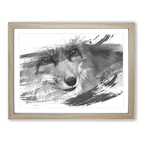 Red Fox Vol.5 V1 Modern Framed Wall Art Print, Ready to Hang Picture for Living Room Bedroom Home Office Décor, Oak A3 (46 x 34 cm)