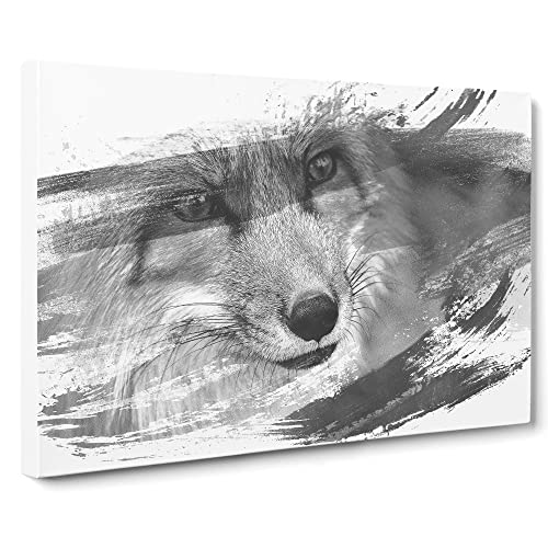 Red Fox Vol.5 V1 Modern Canvas Wall Art Print Ready to Hang, Framed Picture for Living Room Bedroom Home Office Décor, 76x50 cm (30x20 Inch)