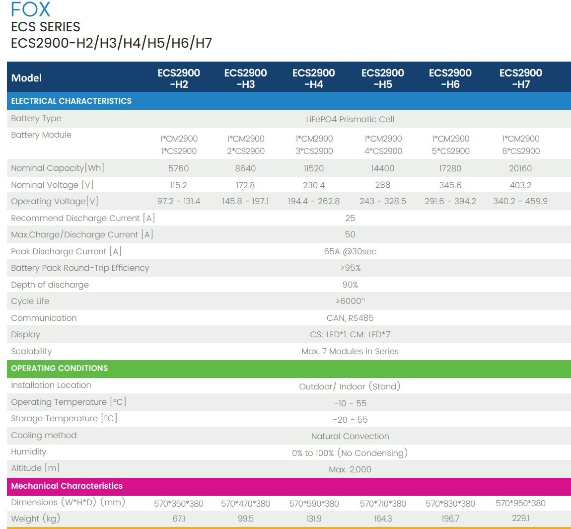 Fox Energy Cube HV ECM2900 V2 Connector Type A, 11.52kWh 1x Master 3x Slave